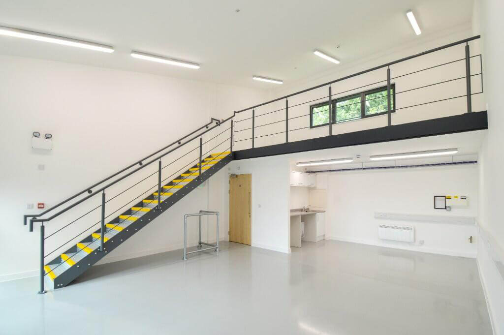 Workshops are 682 sq.ft. and are ideal for light manufacturing and small logistics companies or storage equipment. Each workshop is self-contained and has ground floor space suitable for light work, craftwork or storage with a small kitchen area and separate restroom. Incorporating 1st floor mezzanine space that is suitable for office use or additional storage.
